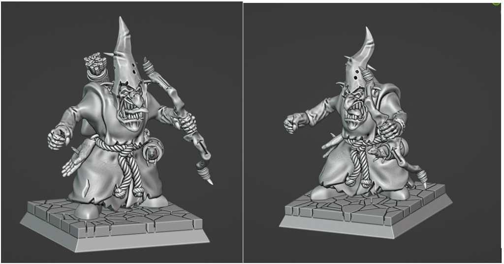 Our next Night Goblin Bow Gobbo is Ratgrod. Ratgrod is a little odd, even for your average Night Goblin. When he isn’t scrapping or scavenging, he can be found in the corner of the caves talking to one of his pet rats. Ratgrod was once a prisoner of the skaven, and while he escaped, he finds comfort in the numerous small rats that lurk near his bedding. Woe to anyone who tries to harm them, for her will go berserk. At the same time, he hates the skaven with a furious passion, but knows their tricks and uses them to lead raiding bands into their holds to steal supplies and leave bodies bleeding out on slick stone floors.
