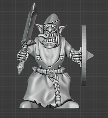 Lurkbarka has an Adamant Arsenal body, Avatars of War hands and face, and Beholder Miniatures Dark Tribe hat. His choppa is from Avatars of War, with a free stl shield.