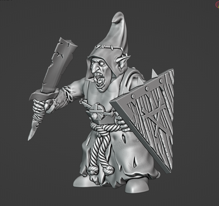 Naffcutta is a terrible fighter, and is more likely to cut himself or another gobbo than the enemy with his wild swings.