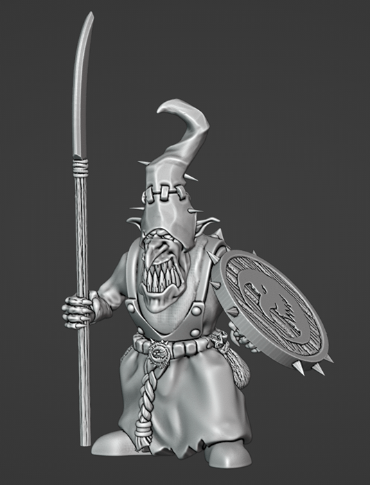 Adamant Arsenal body, with Battle Yak Cankergits hat and eyes, with Avatars of War lower face and hands. Free stl weapons, shield, and belt accessories.