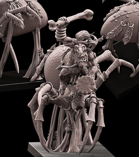 For this week’s update, we are going to provide another sneak peak at future reveals. This time it’s some work I have been doing on making night goblin version of forest goblin spider riders. Avatars of War put out an awesome multipart kit (grab it here) that I decided would be the perfect basis. Here are some shots showing the model kitbashes I did, along with the one’s from kit they were inspired by.