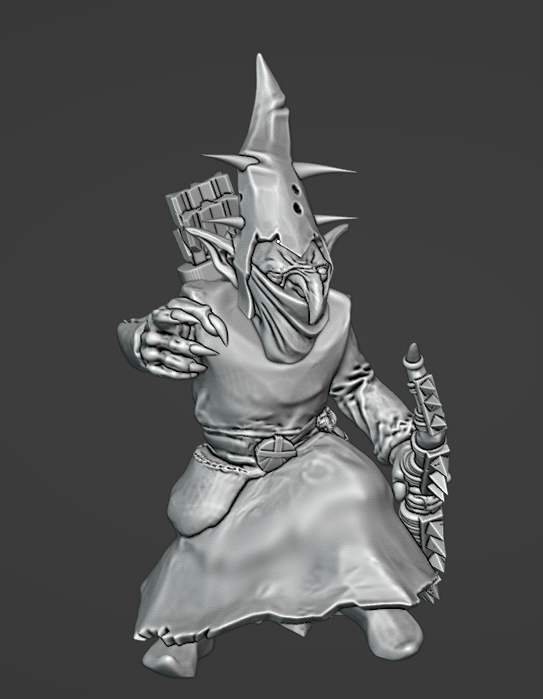 Free stl body, Avatars of War hands and bow, Cankergit hood, Titanforge scarf, and vdm eyes and nose.