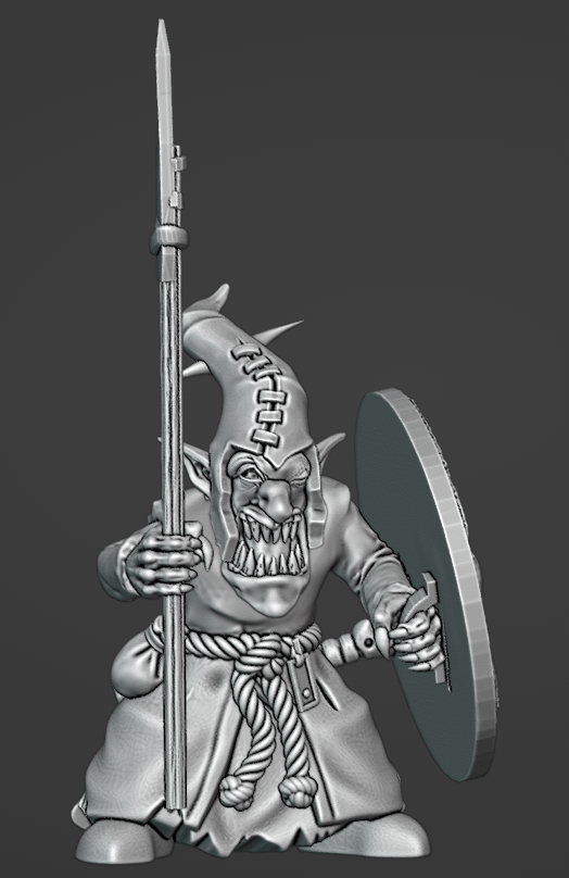 Naabash likes the huge shield he looted from one of the dead spikee humans the tribe came across doing weird hummie magic one dark night. He can hide behind it better while poking back with his stabba.