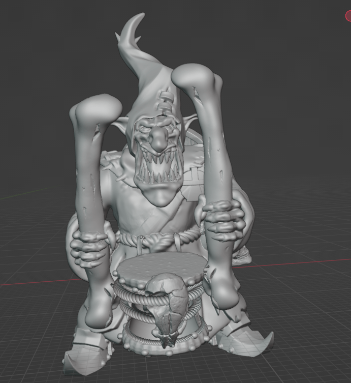 Free torso, Adamant Arsenal lower robe and arms, titanforge feet, Cankergit hood, Avatars of War face, hands and bone drumsticks. Custom made drum with vdm pebbled squig skin drumheads. Free stl accessories.