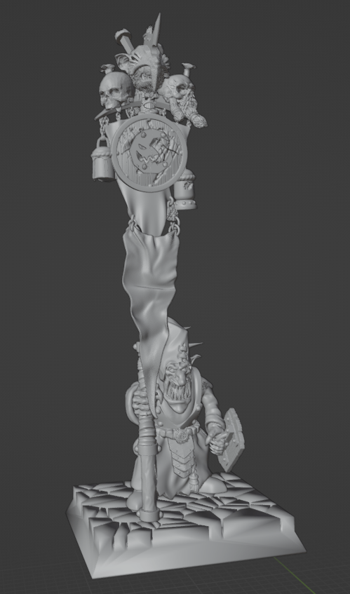 Adamant Arsenal body and arms, Cankergit hood, Avatars of War hands, face and Avatar of War/Highland Miniatures blended banner (customized with additional free stl bits). Titanforge shield.