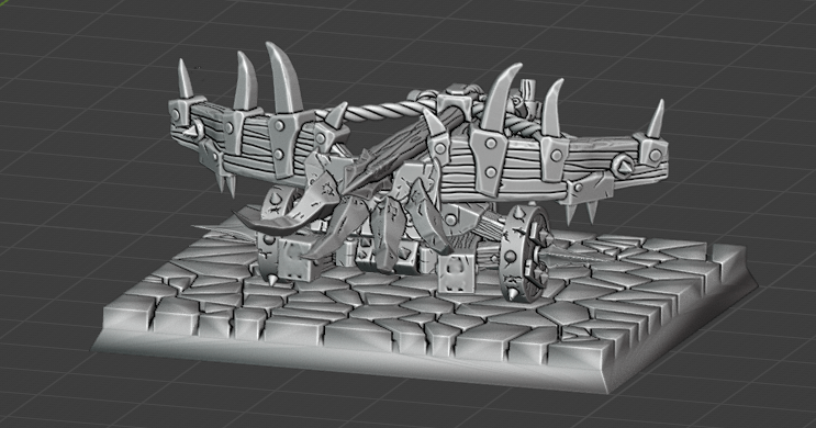 Titanforge ballista with lower frame chopped down, new wheels added (from Avatars of War Grotling wagon)