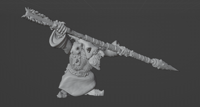 Body from Avatars of War chariot crew, Avatars of War feet, torso, hands, face and spear (with highland rear end). Sculpted hood and robe.