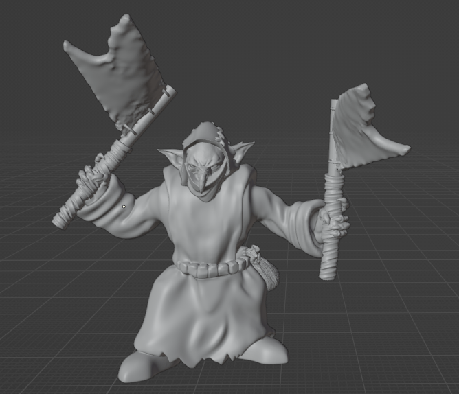 Adamant Arsenal body and arms, Beholder hood, Titanforge scarf, vdm nose and eyes, Avatars of War hands and flag poles (from spears), free stl flags.