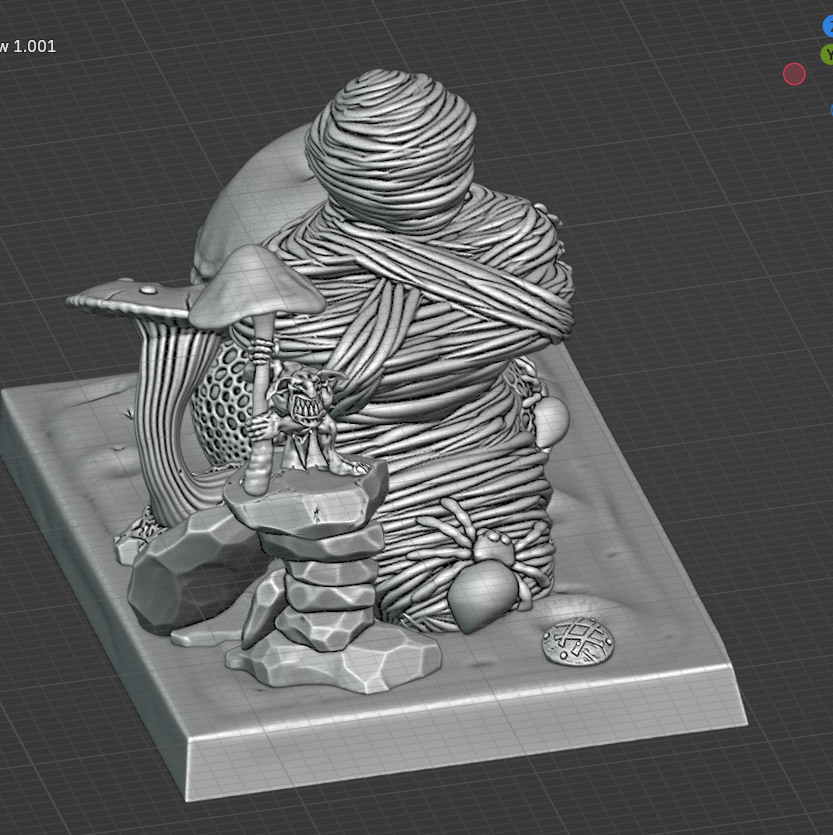 I then used a version of the previous masking and inflate trick to give a cavern/fungus bed/spider nest look to the base.