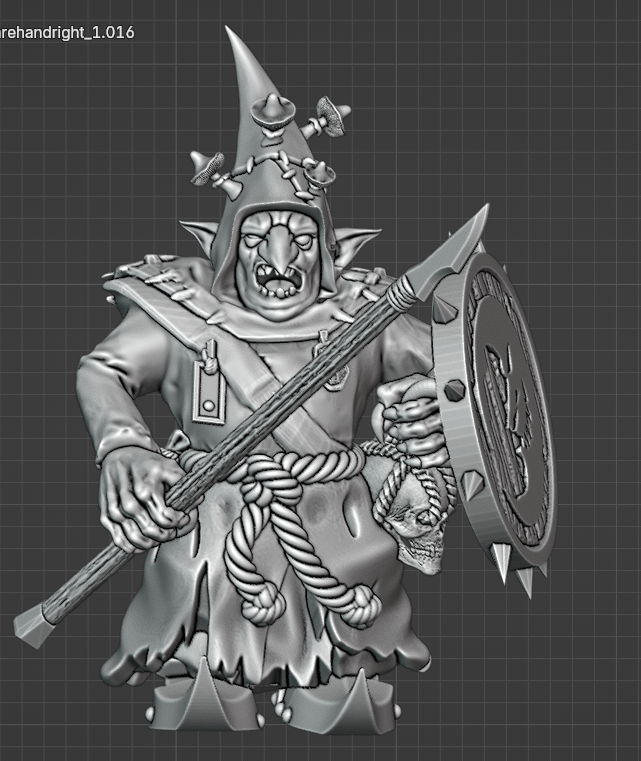 Free stl torso, spear and shield,Adamant Arsenal lower body, Avatars of War hands, Beholder head, Titanforge feet, free stl trinkets, VDM edited face.