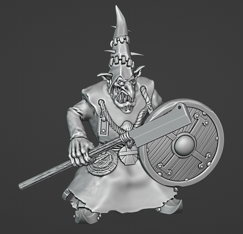 Free stl body and weapon, Highland Miniatures shield, Avatars of War hands and face, Cankergit hood, Titanforge feet, free stl trinkets.