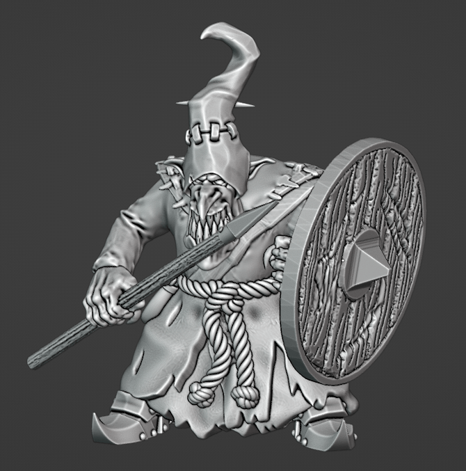Free stl weapon, torso and shield, Avatars of War hands and face (modified), Cankergit hood, Adamant Arsenal lower body, Titanforge feet, free stl trinkets.