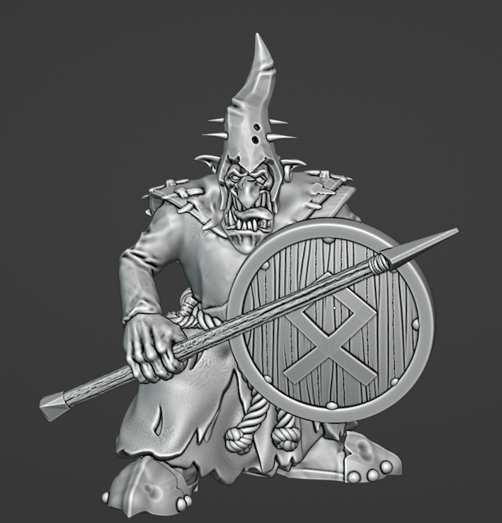 Free stl weapon and torso, Avatars of War hands and feet, Cankergit hood, Adamant Arsenal lower body, free stl trinkets, Highland Miniatures shield.
