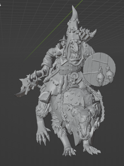Splatterpelt rides a mount covered in dried blood, leftovers from his charges into enemy ranks.