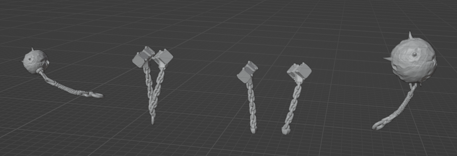 Here are some basic images (I do like the idea of two smaller weapons (would help spin you IMO, and also more feasible that fanatic could lift (even drugged out, I have hard time seeing gobbos swinging metal balls almost same size as them). I had shown the last image (gobbo swinging gobbo) and like the basic idea, will definitely include in the future rework plans.