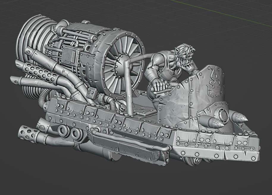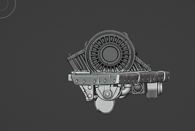 Then thought about it some more, and decided Orks would have a big old engine on the rokkit cycle and added this one.