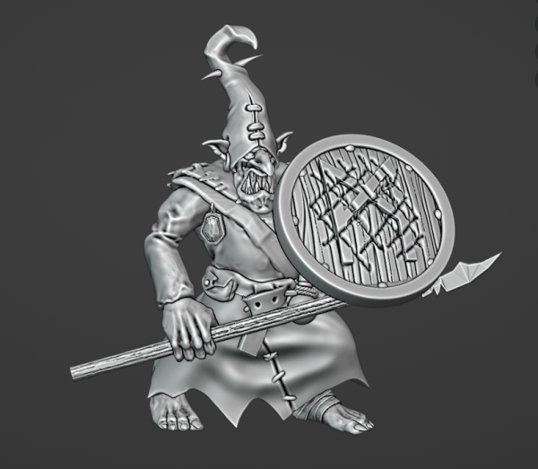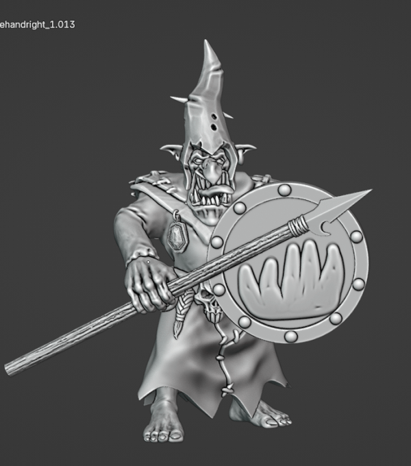 Morspar has only recently been put into the spear gobbos, being promoted from gathering and scavenging. Free stl torso, Beholder legs, free stl weapon, Cankergit hood, , Avatars of War facem shield (modified) and hands.