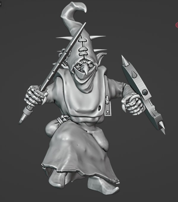 Zagrod is fast of foot and ever faster with his hands. He can cut your throat before you even think about sassing him. Adamant Arsenal body, Cankergit hood, Avatars of War lower face and hands, free stls weapon, shield and accessories.