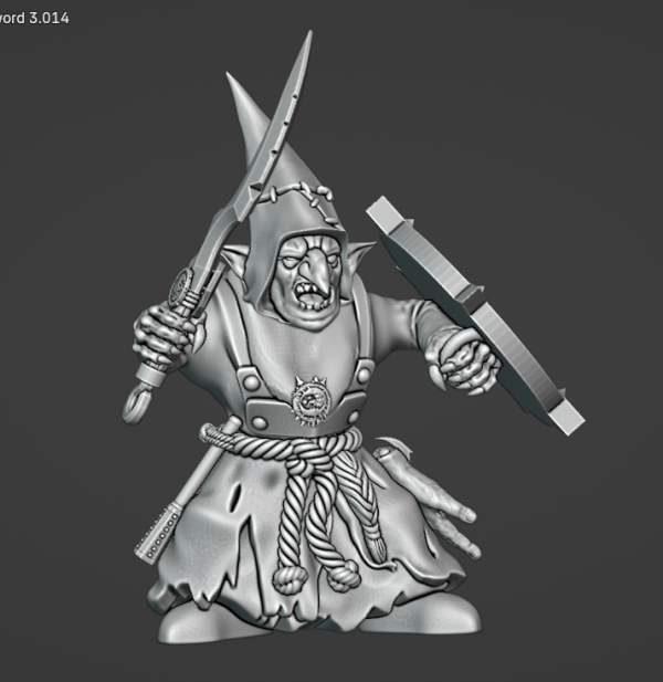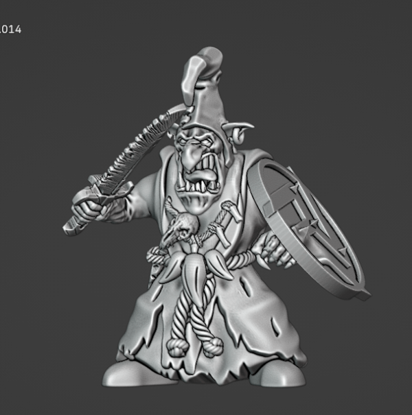 Dregwazza is a quick gobbo, on foot and with his blade. He likes nothing better than getting behind and enemy and carving out their kidneys or cutting their throat. Dregwazza has an Adamant Arsenal body, with The Beholder Miniatures Black Horde head (minor adjustments), and Avatars of War hands and shield. Free stl weapon and... Continue Reading →