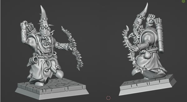 Today's Night Goblin Bow Gobbo is Snotshuv Bateyes. Snotshuv has even more sensitives eyes than other night goblins, and tends to keep his hat and hood pulled down over his eyes. Because of this, his hearing and has grown extremely acute, and his mates have seen him bag skittering rats with quick shots in total... Continue Reading →